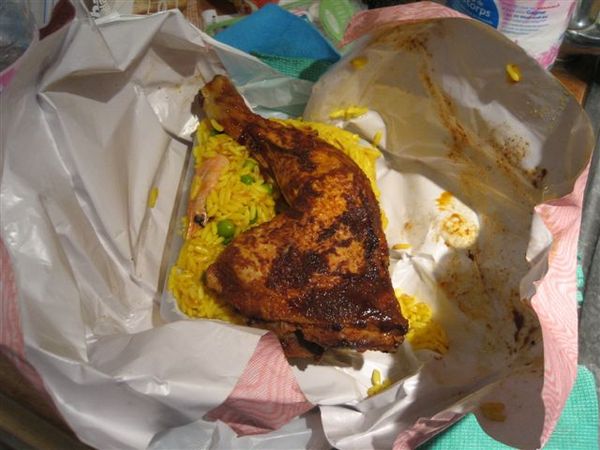 然後我還在一家生意很好的攤子買了西班牙菜飯加上雞腿一隻